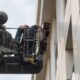 Avcılar'da bir evin balkonundaki kombinin üzerindeki yuvasından uçan yavru kumru karşı binanın cam balkonuna düşünce mahsur kaldı. Yavru kumruyu itfaiye kurtardı. (Fotoğraf:İhsan DÖRTKARDEŞ/İSTANBUL-DHA)