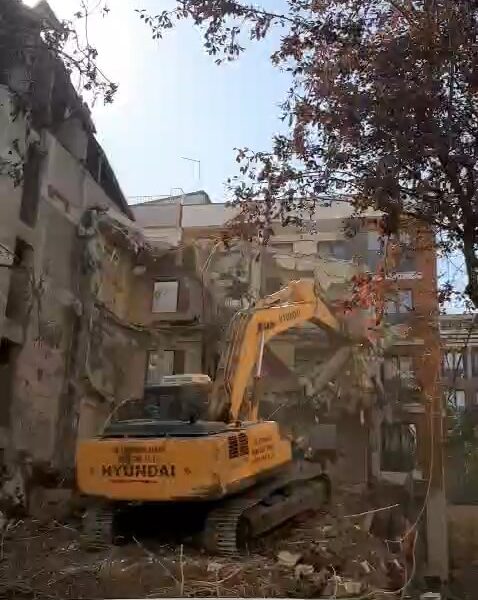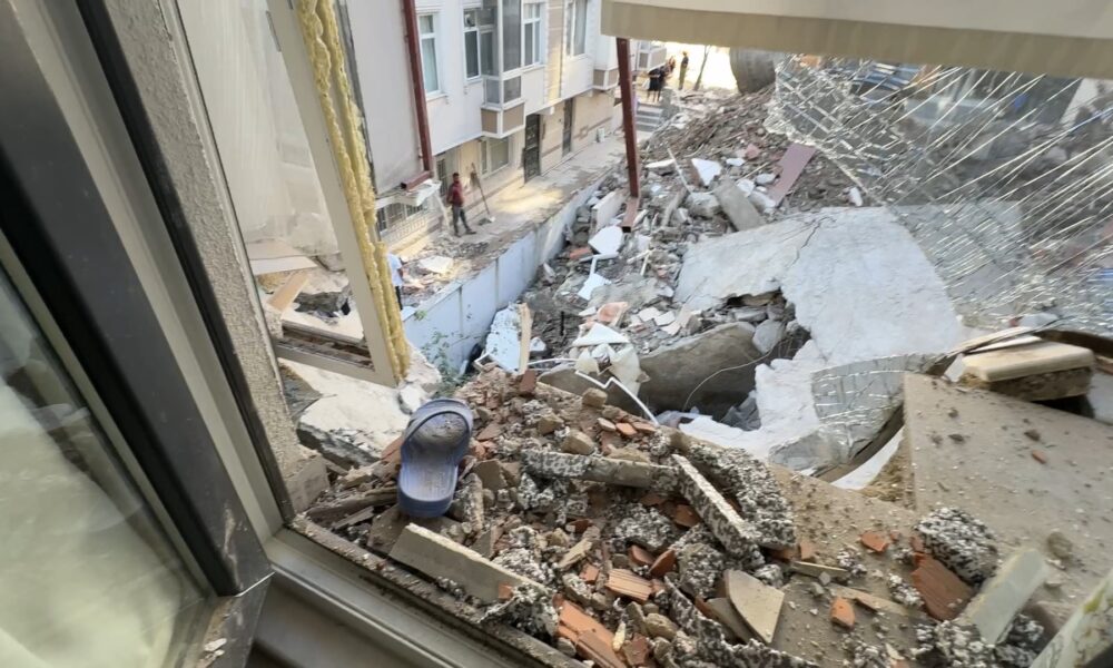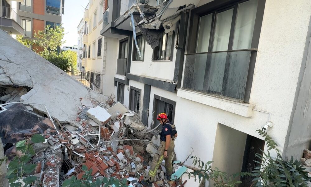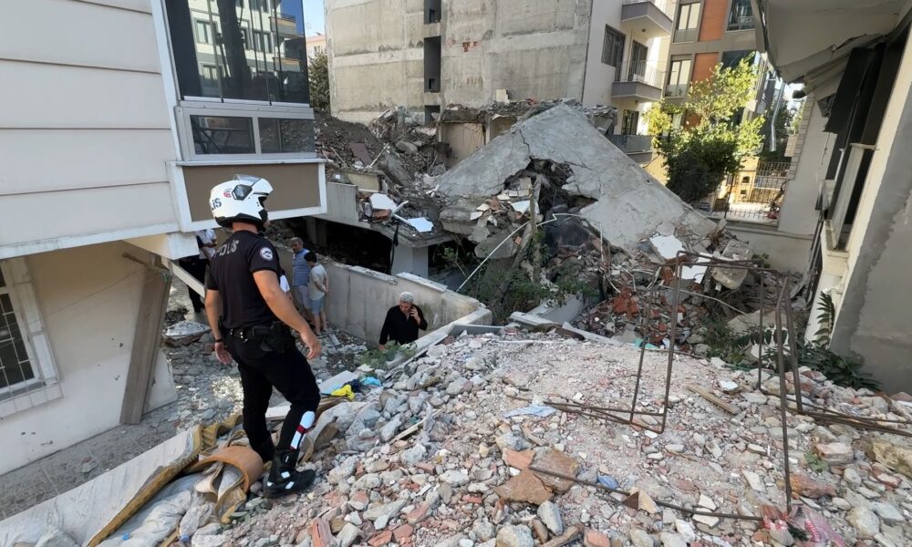 İstanbul – Avcılar’da yıkım sırasında devrilen binayı iş makinesi ile tutmaya çalıştılar