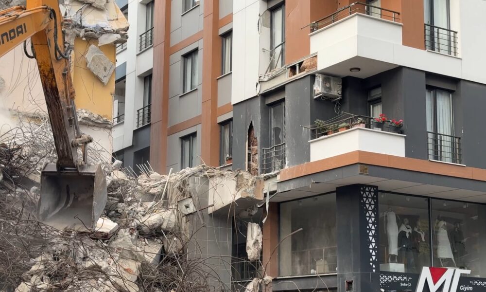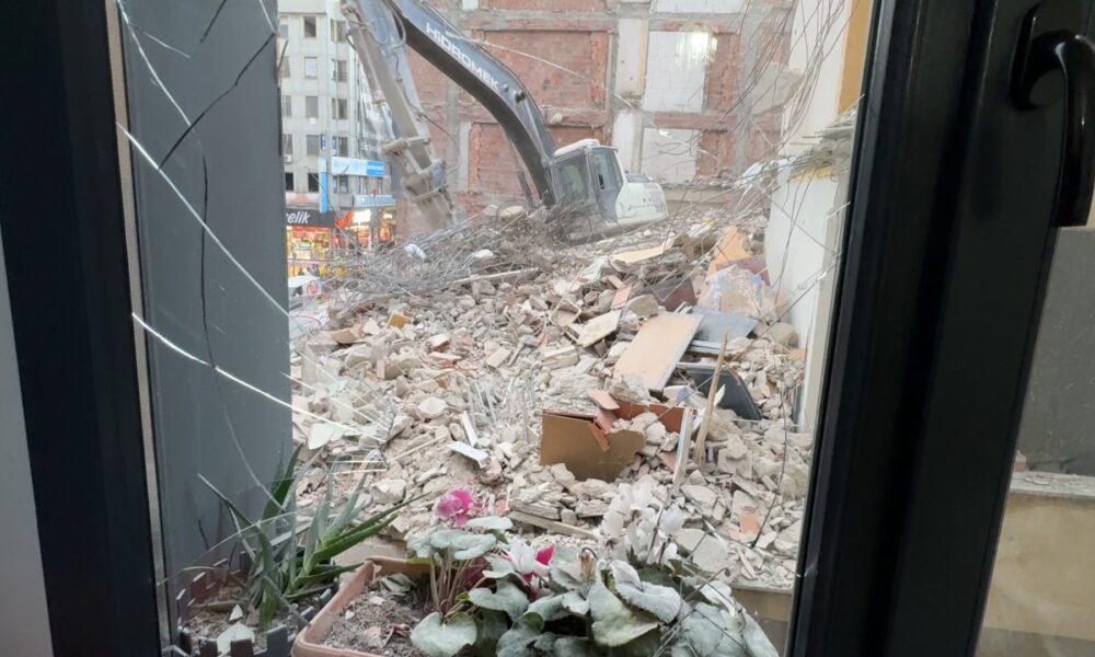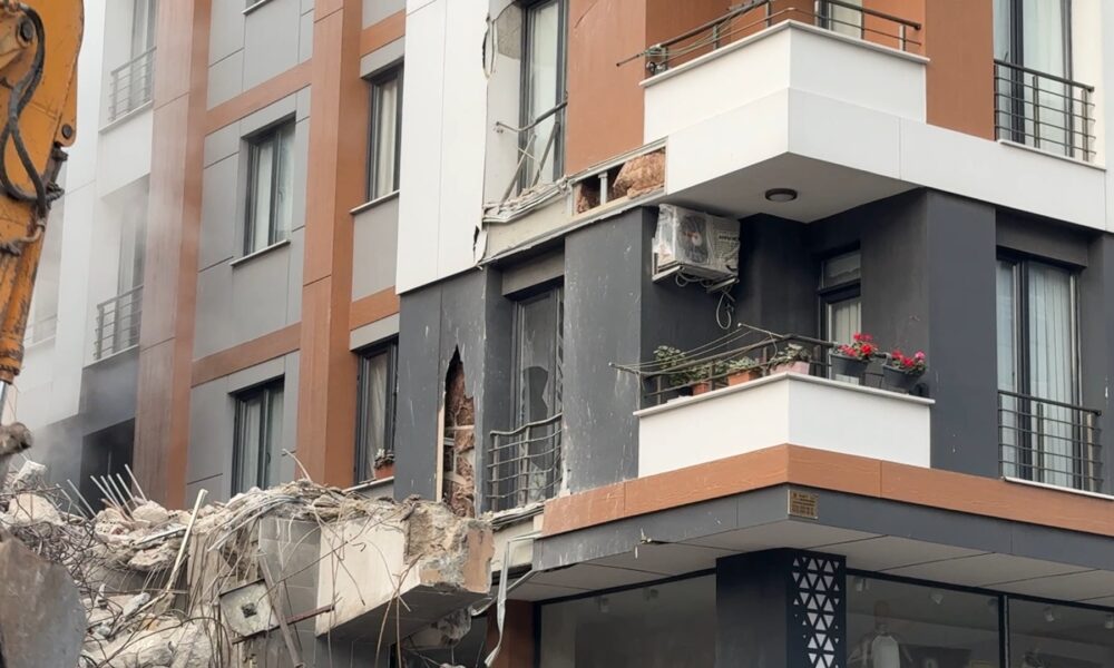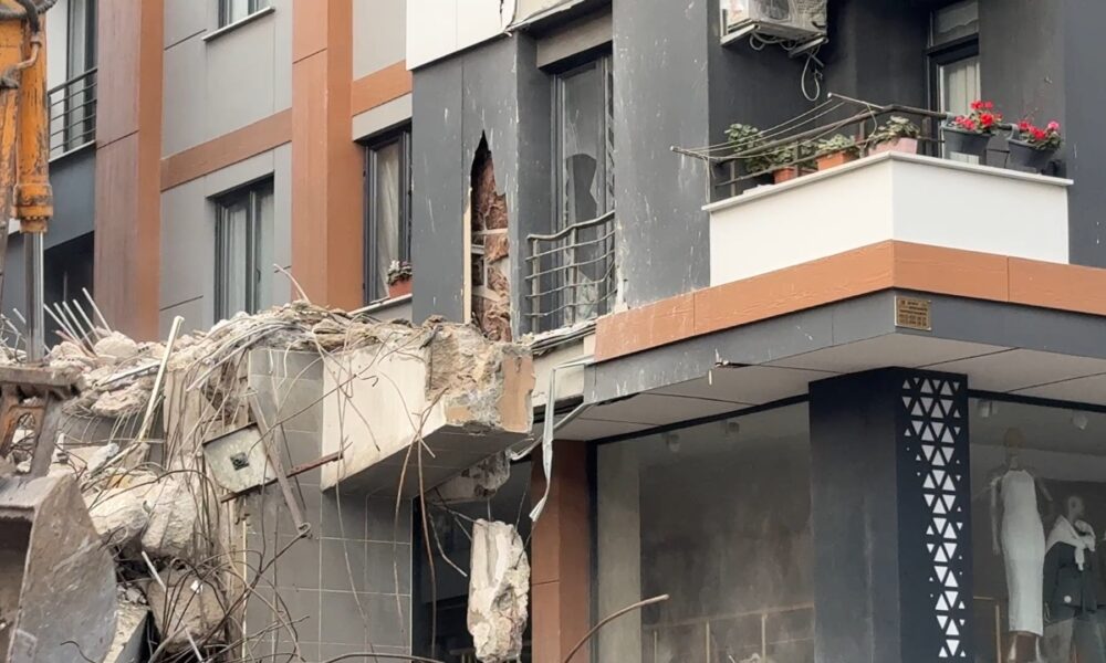 İstanbul – Avcılar’da yıkım sırasında dökülen beton parçaları yanındaki binaya zarar verdi