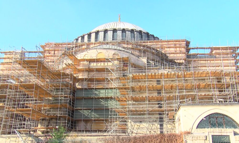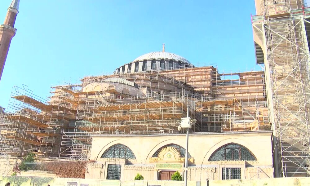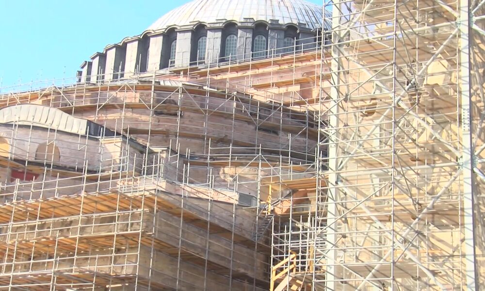 İstanbul – Ayasofya-i Kebir Cami-i Şerifi’nde ikinci restorasyon: Dev iskele kuruldu, 2’nci Bayezid Minaresi’nin bir bölümü söküldü