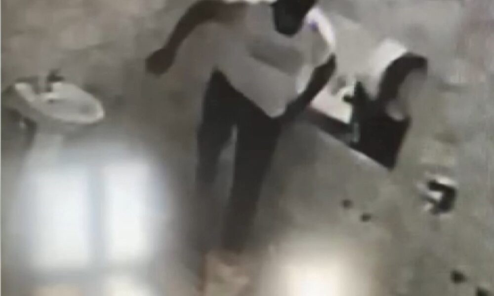 İstanbul- Bağcılar’da cami şadırvanının musluklarını ayağı ile kırıp çalan şüpheli kamerada