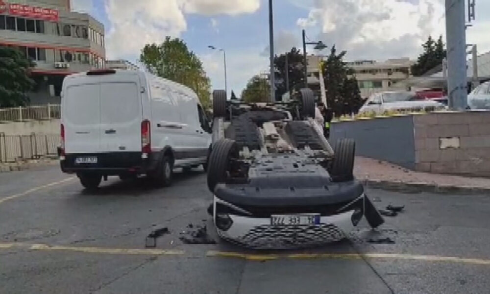 İstanbul- Bahçelievler’da minibüsün çarptığı otomobil devrildi