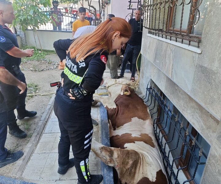 Olay, bugün öğle saatlerinde Kocasinan Mahallesinde meydana geldi. Edinilen bilgiye göre; kurban pazarından satın alınan boğa, bir binanın bahçesine bağlandı. Kesim için bağı çözülen boğa kaçmaya çalışırken binanın bodrum katındaki dairenin pencere boşluğuna düştü. Boğayı bulunduğu yerden çıkaramayan sahipleri durumu itfaiye ve belediye ekiplerine haber verdi. İhbar üzerine olay yerine gelen ekipler, iş makinesine bağladıkları boğayı bulunduğu yerden kurtardı. Çevredekiler kurtarma operasyonunu cep telefonu kamerasıyla kaydetti.