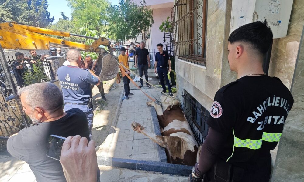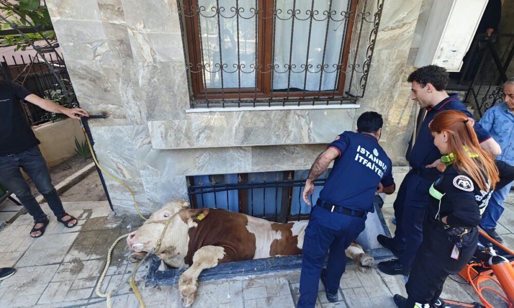 İstanbul- Bahçelievler’de bodrum kattaki dairenin pencere boşluğuna düşen kurbanlık kurtarıldı