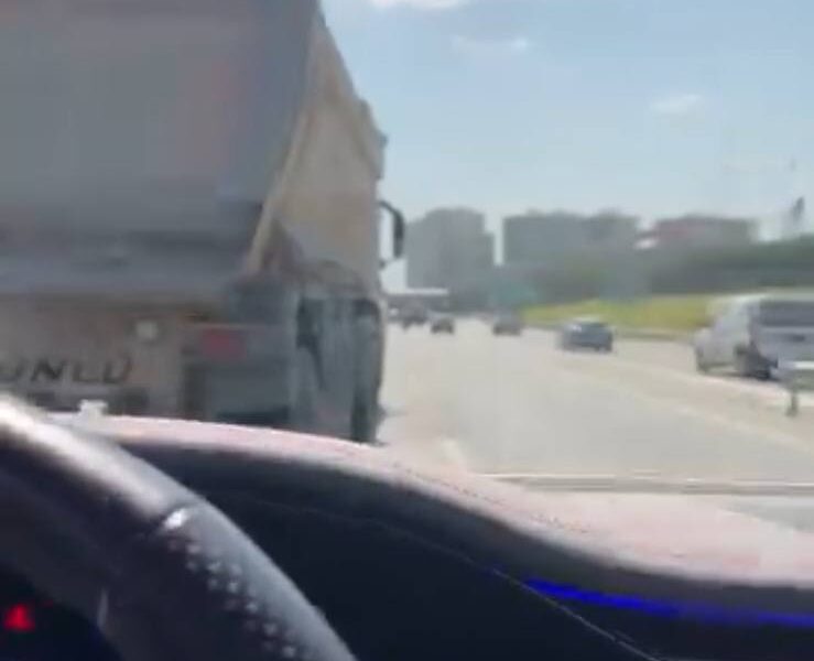 İstanbul – Bahçelievler’de hafriyat kamyonunun makas atarak ilerlediği anlar kamerada