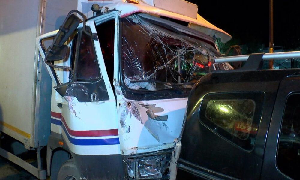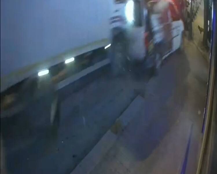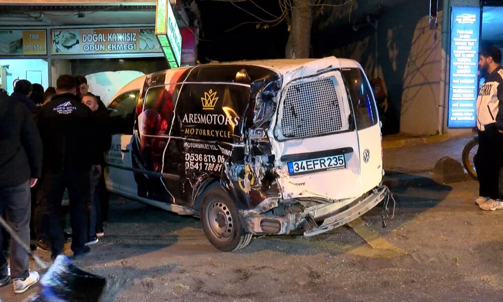 İstanbul – Bahçelievler’de kamyonun çarptığı hafif ticari araç ekmek fırınına girdi; kaza kamerada