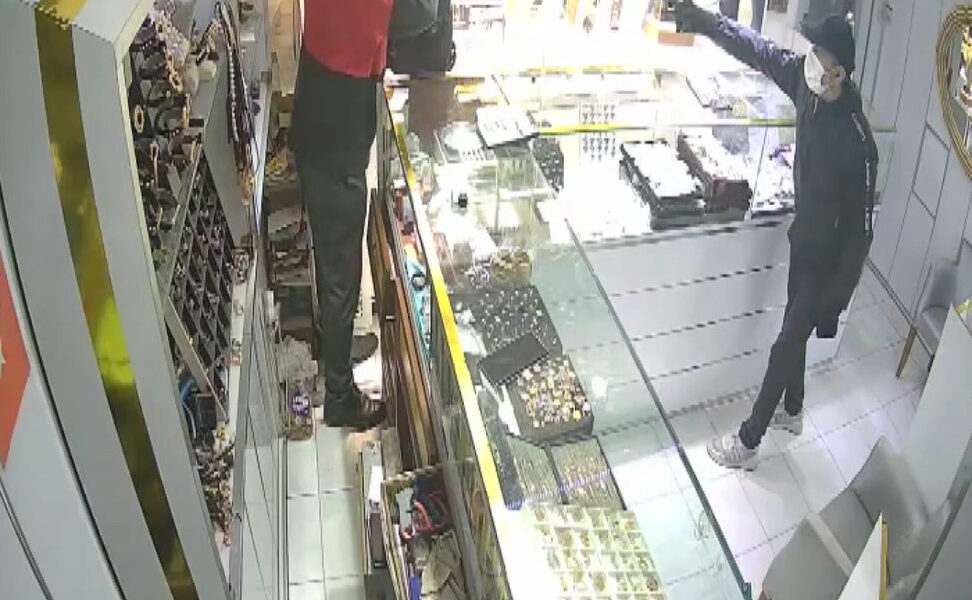 Bahçelievler Kocasinan Mahallesinde 15 Ocak saat 19.00 sıralarında meydana gelen olayda yüzündeki cerrahi maskeyle bir kuyumcuya selam vererek giren şüpheli, kasada bulunan kişiden vitrindeki altınları çantaya doldurmasını istedi. Silah tehdidi ile bilezikleri çantaya doldurtan şüpheli yaya olarak olay yerinden ayrıldı.
