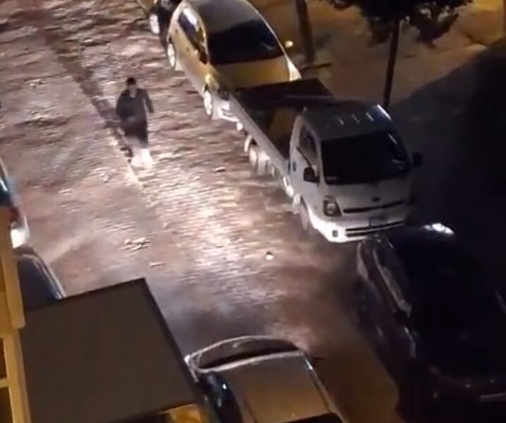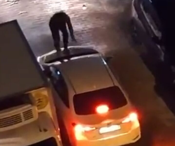 Bahçelievler'de tabancalı bir kişi, sokakta bulunan bir otomobilin önüne atlayarak sürücünün kapıyı açmasını istedi. Kişinin aracın kaputunda tehditler savurduğu anlar cep telefonu kamerasıyla görüntülendi. - Fotoğraf: İstanbul DHA