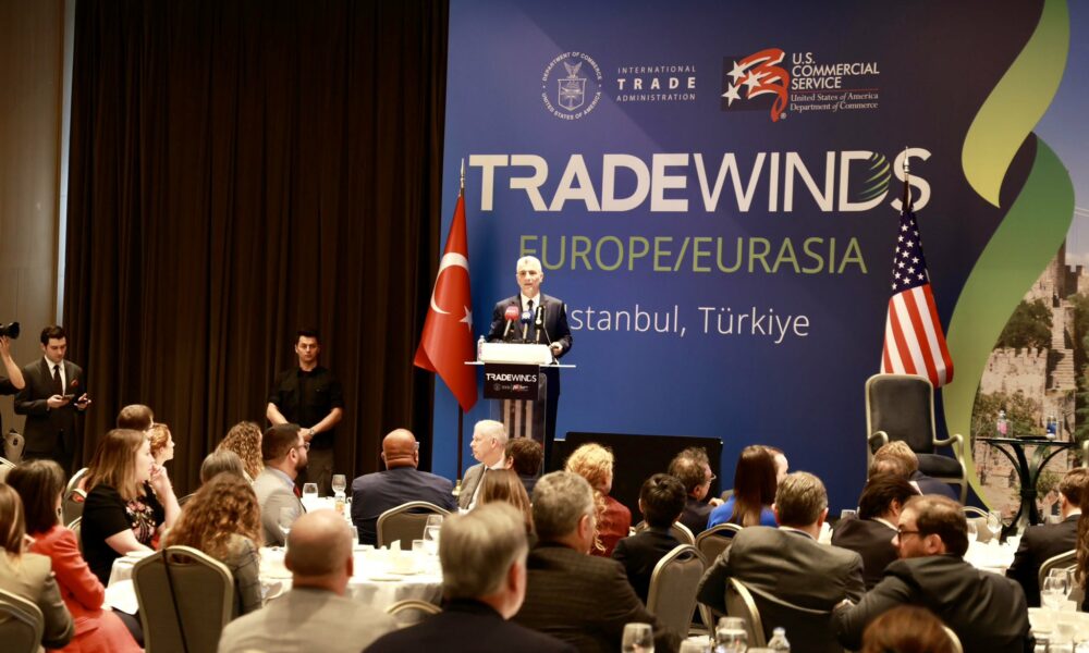 ABD Ticaret Bakanlığı tarafından 13- 15 Mayıs’ta İstanbulda düzenlenen ‘Trade Winds Europe/ Eurasia’ ticaret misyonu ve iş geliştirme forumunun ikinci günü kapsamında ABD Büyükelçisi Jeffry Flake ve Ticaret Bakanı Ömer Bolat açılış konuşması yaptı. Organizasyona ABD Başkonsolosu Julie Eadeh, ABD Ticaret Bakanlığı uluslararası ticaretten sorumlu danışman Marisa Lago ve 300’den fazla yerli ve yabancı iş insanı katıldı.