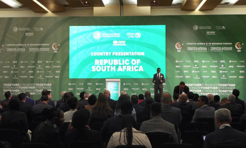 Güney Afrika Cumhurbaşkanı Yardımcısı Paul Mashatile ve Türkiye Cumhuriyeti Ticaret Bakanı Ömer Bolat, TABEF’in 2nci gününde düzenlenen ‘Güney Afrika Ülke Tanıtımı’ oturumunda biraraya geldi. Programda iki ülke arasındaki ekonomik ilişkiler ve yatırım fırsatları ele alındı. Açılış konuşmasını yapan Ticaret Bakanı Ömer Bolat, Türkiye ile Güney Afrika arasındaki ekonomik ilişkilerin son 22 yılda büyük ilerleme kaydettiğinin altını çizdi.