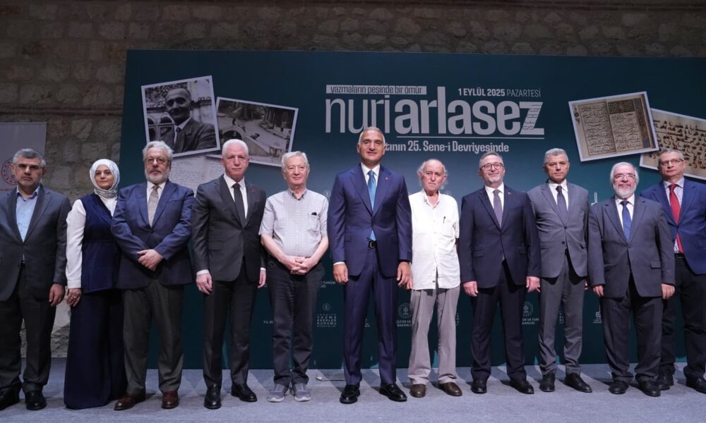 Programda konuşma yapan Kültür ve Turizm Bakanı Mehmet Nuri Ersoy, “Süleymaniye Yazma Eser Kütüphanemize bağışlanmış olan, tarihi ve sanat değeri çok yüksek 329 nadide el yazması, hat sanatımızın büyük ustalarının el emeği, göz nuru 350 hat levhası, Topkapı Sarayı’na bağışlanan ve ayrı ayrı her biri sanat eseri olan 232 işleme ve İslam Tarih, Sanat ve Kültür Araştırma Merkezi’ne bağışlanan 11 binden fazla fotoğraftan oluşan arşiv ve şahsi mektuplar… İşte bu muazzam rakamların, ilimden sanata uzanan tarihi ve kültürel bu eşsiz hizmetin altında imzası olan isimdir Nuri Arlasez. Hepimiz biliyoruz ki bir millete ait medeniyet kavramından bahsetmek istersek; kültür varlıkları, sanat eserleri, ilmî ve edebi yazmalar gibi o medeniyetin korunup muhafaza edilmiş ve hâlihazırda yaşayan, sürdürülen bir mirasını ortaya koyabilmemiz gerekir. Yani geçmişten bugüne bir köprü, bir bağ olmalıdır. Nuri Arlasez ülkemizde bu köprüyü ayakta tutmaya, o bağı koruyup gelecek kuşaklara aktarmaya ömrünü adamıştır. Onun tutkusu kültür hafızamıza nice eser kazandırmış, onu zenginleştirip derinleştirmiştir. Bizler onu sadece bir koleksiyoner olarak değil, kültür mirasımızı omuzlayıp nesilden nesile ulaştıran bir elçi olarak görüyoruz” dedi.