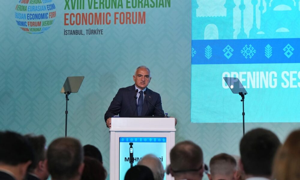 18inci Verona Avrasya Ekonomi Forumunun açılışı, Enerji ve Tabii Kaynaklar Bakanı Alparslan Bayraktar ile Kültür ve Turizm Bakanı Mehmet Nuri Ersoyun katılımıyla İstanbul Çırağan Sarayında gerçekleşti. New Energy for New Economic Realities temasıyla, Avrasya ülkeleri arasında ekonomi, enerji, ulaşım, dijital teknoloji, tarım, finans ve turizm alanlarında iş birliğini geliştirme amacıyla düzenlenen forum yarın son bulacak.