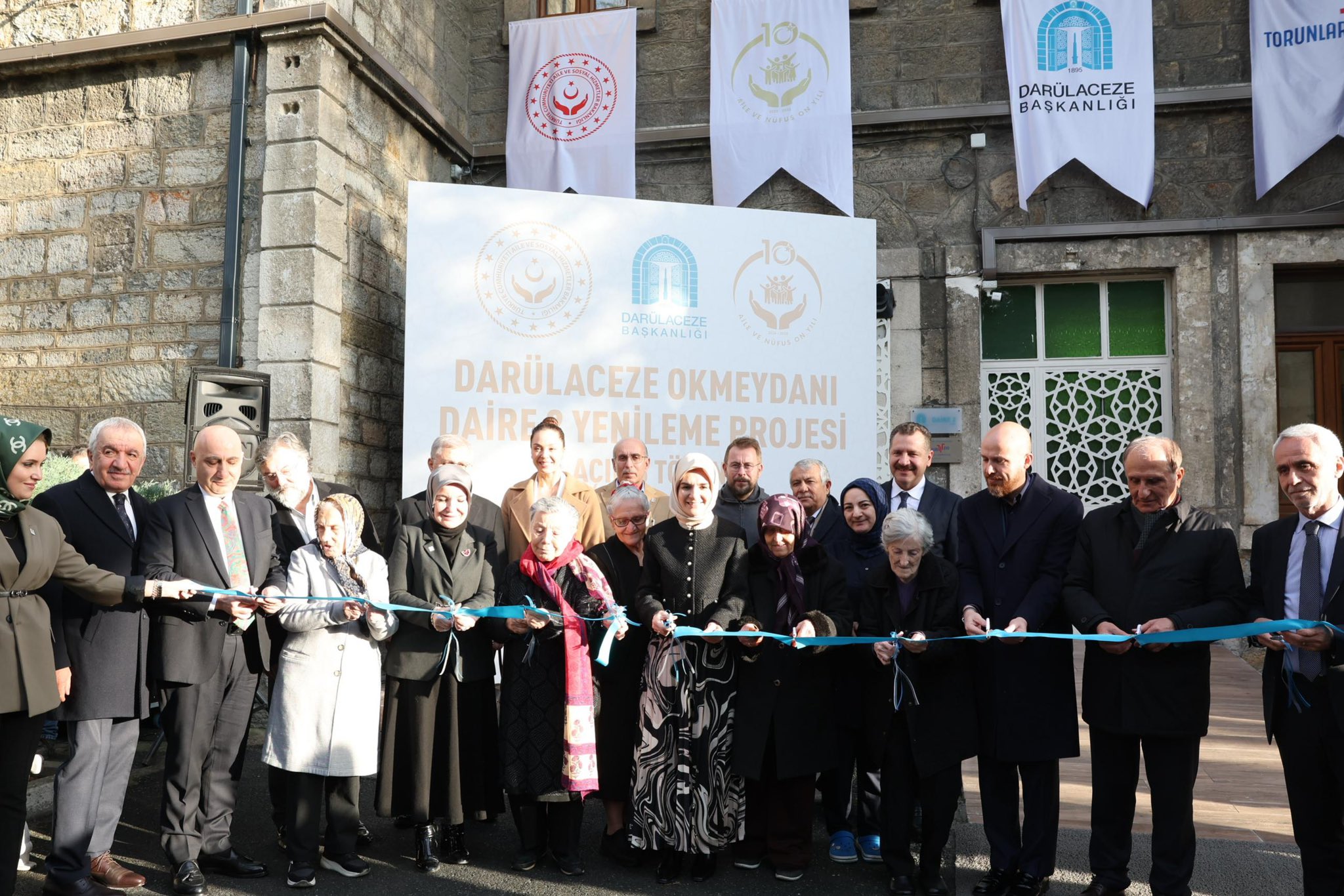 Darülacezede yenileme çalışmaları tamamlanan Okmeydanı Daire Yenileme Projesinin açılış töreni Aile ve Sosyal Hizmetler Bakanı Mahinur Özdemir Göktaşın katılımıyla gerçekleştirildi. Bakan Göktaş törenin ardından Darülacezede kalan kişilere ziyarette bulundu.
