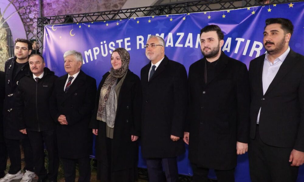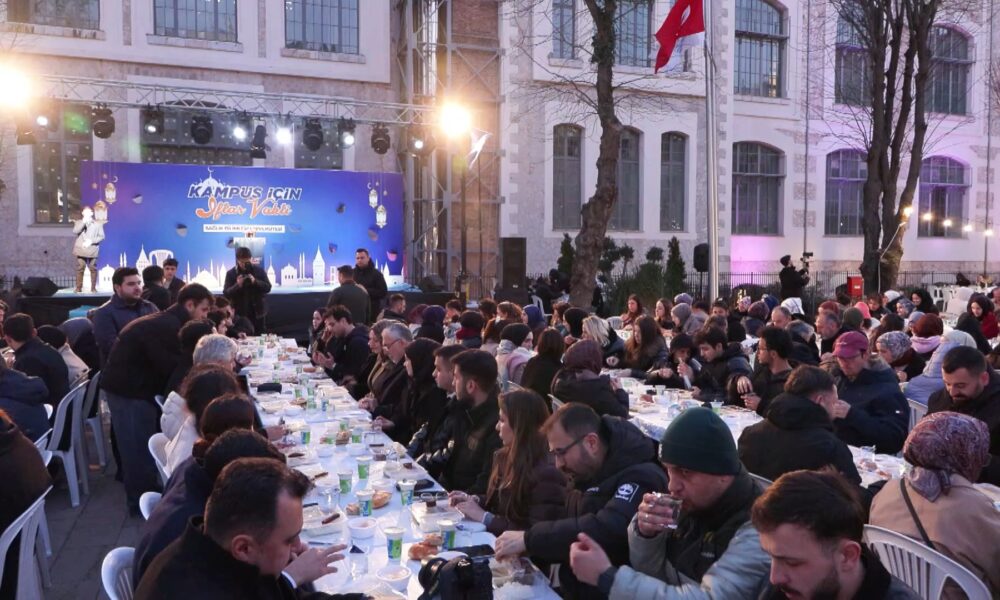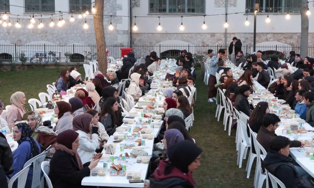 Sağlık Bilimleri Üniversitesi Rektörü Kemalettin Aydın, “Bugün, Ramazanın manevi ikliminde öğrencilerimizle 20 gündür yapmış olduğumuz iftarın bugün en büyüğünü yaptık. Sağlık Bilimleri Üniversitesinin hem burada hem Ankarada hem Somalide hem Buharada hem Semerkantta külliyeleri var. 20 gündür her gün ortalama 500 civarında öğrenci kulübümüz iftarlarını hem burada hem Ankarada yapıyordu. Bugün de Sayın Cumhurbaşkanımızın ekibine verdiği talimatla beraber, 5 bine yakın öğrencimiz de bu iklimde iftarımızı açtık. Sayın Çalışma ve Sosyal Güvenlik Bakanımız Vedat Işıkhan Bey de iftarımızı onurlandırdı. Gençlerimizin gözlerinde gördüğümüz soğuk bir havadayız, açık havadayız ama çok mutlular ve gözlerindeki ışıltı ve sıcaklık hepimizi ısıtıyor. Çünkü böyle iklimlerde, böyle zaman dilimlerinde bir arada olmak, bir arada hem o Ramazanın bereketini, mağfiretini hem de bugünlerde başlamış olan son dönemin kurtuluşunu beraber yaşıyoruz. İnşallah dünya böyle bir günde, savaşların olmadığı, İranda 169 çocuğun okulda öldürülmediği, kurtuluşun bütün insanlığı kucaklayacağı, İslam âleminin bu mübarek ikliminin bütün dünya insanlarını sarıp kucaklayacağı, savaşsız bir zaman diliminde inşallah bu gençlerimiz de kendi hayatlarını kurar ve yaşarlar ” dedi.