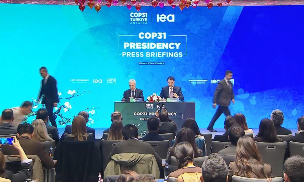 Çevre Şehircilik ve İklim Değişikliği Bakanı Murat Kurum COP31 Başkanlığı sürecine ilişkin düzenlenen basın toplantısında konuştu. Toplantıya Uluslararası Enerji Ajansı Başkanı Fatih Birol ve davetliler katıldı. Bakan Kurum konuşmasında “Bugün dünyanın, özellikle son dönemde en önemli konusu enerjinin ve iklim politikalarının kesiştiği bir eşikteyiz. Son yıllarda yaşanan jeopolitik gelişmeler ve çatışmalar, enerji arz zincirinin kırılganlığını bir kez daha ortaya koymuş, enerji güvenliği yeniden stratejik bir öncleik haline gelmiştir ki, bugün yaşadığımız savaşlar bunu net bir şekilde göstermektedir. Bu noktada Uluslararası Enerji Ajansı enerj güvenliği ve dönüşümü alanında belirleyici bir rol üstlenmiş ve bu alanda çok kritik bir referans haline gelmiştir. Enerji alanında olduğu gibi iklim krizinde de kritik bir eşikte bulunuyoruz. Dünyamız yaşadığımız orman yangınları kuraklık su stresi biyolojik çeşitlilik kaybı gıda ve enerji sistemleri üzerinde baskılarla kaşrı karşıya ” dedi.