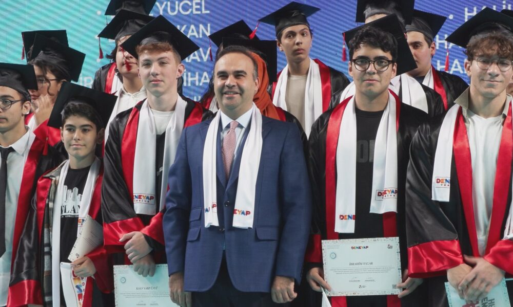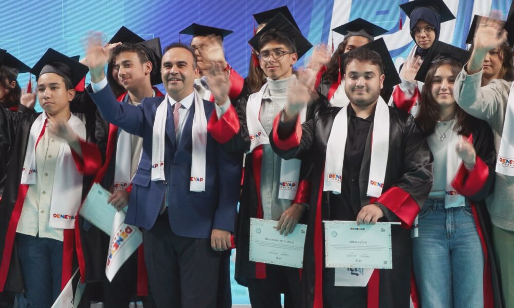 MİLLİ Teknoloji Hamlesi vizyonu doğrultusunda geleceğin teknoloji yıldızlarını yetiştirmek amacıyla hayata geçirilen DENEYAP Teknoloji Atölyelerinde yer alan Türkiye genelinde binlerce öğrenci bugün mezuniyet coşkusu yaşadı. DENEYAP Teknoloji Atölyeleri Mezuniyet Törenine Sanayi ve Teknoloji Bakanı Mehmet Fatih Kacır, Gençlik ve Spor Bakanı Osman Aşkın Bak ile T3 Vakfı Mütevelli Heyeti Başkanı Selçuk Bayraktar, öğretmenler, eğitmenler, çok sayıda öğrenci ve veliler katıldı. 81 ilde eş zamanlı gerçekleşen ve yarın da devam edecek olan mezuniyet töreninde 2019-2025 yılları arasında 11 farklı teknoloji alanında üç yıllık eğitimlerini başarıyla tamamlayan öğrenciler diplomalarını aldı. İstanbuldaki DENEYAP Teknoloji Atölyeleri Mezuniyet Töreninde yaklaşık 3 bin kişinin katılımıyla Bahçelievler Şehit Mustafa Özel Spor Kompleksinde gerçekleştirilirken, bin öğrenci diplomalarını aldı.