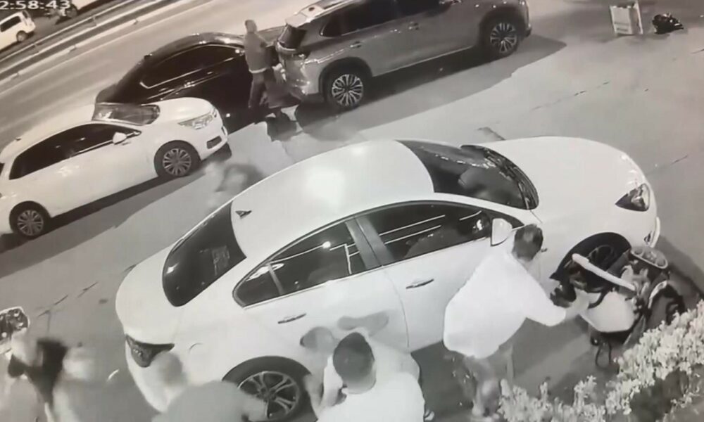 BAKIRKÖY’de motosikletli 2 şüpheli, eğlence mekanı önünde bekleyenlere ateş etti. Saldırıda 1’i yabancı uyruklu olmak üzere 2 kişi yaralandı.Kaldırımda bebeğiyle bekleyen bir baba saldırıdan son anda kurtuldu. O anlar güvenlik kamerasına saniye saniye yan
