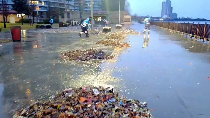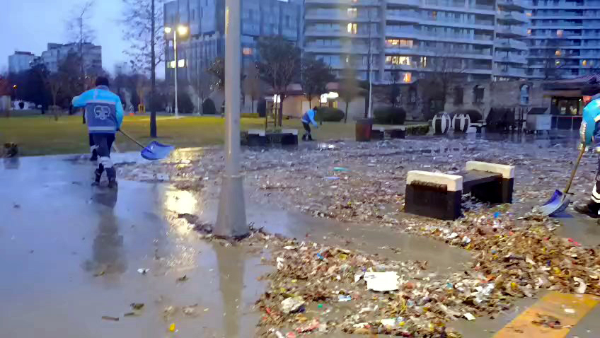 • İSTANBUL genelinde etkili olan lodosun ardından denizdeki atıklar dalgalarla Bakırköy Sahili'ne taşındı. Baruthane Millet Parkı'nın bulunduğu sahilde temizlik çalışması başlatıldı. Fotoğraf: İhsan Dörtkardeş / İstanbul DHA