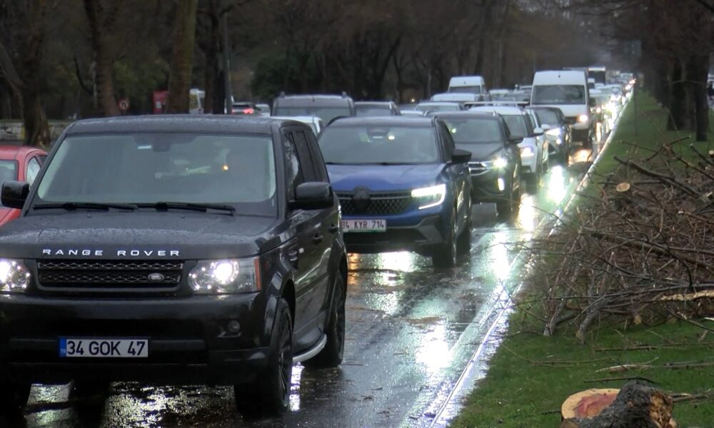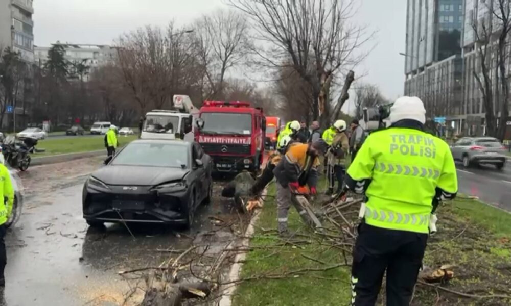 İstanbul- Bakırköy’de rüzgar nedeniyle kopan ağaç dalı otomobilin üzerine düştü; 4 araç birbirine girdi