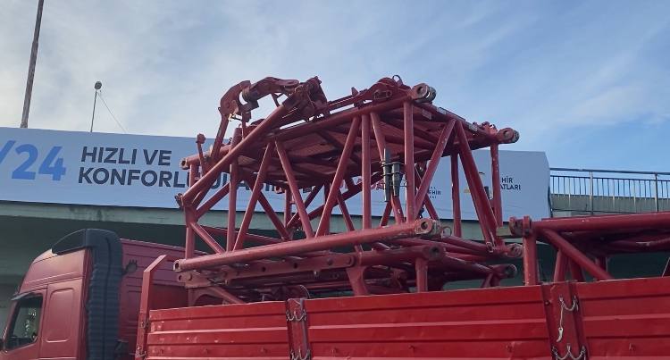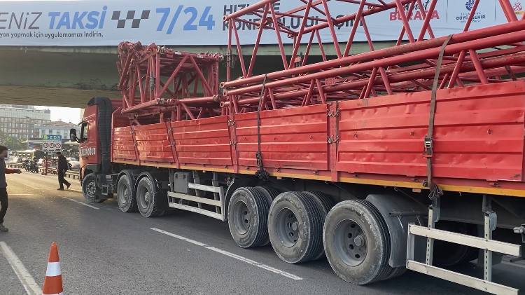 İstanbul – Bakırköy’de vinç parçası yüklü TIR köprüye sıkıştı
