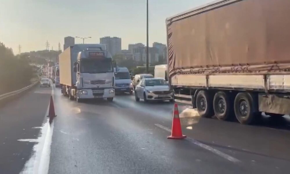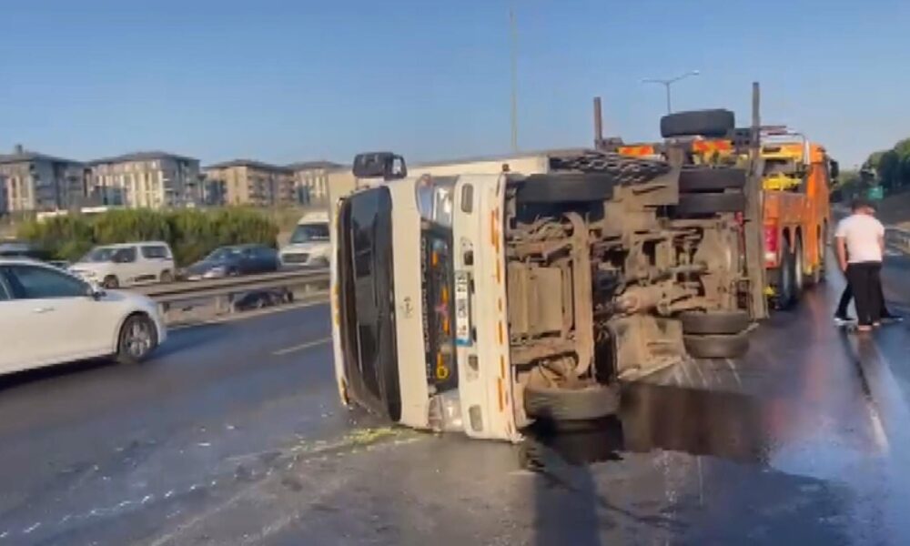 İstanbul – Başakşehir TEM Otoyolu’nda kamyonet devrildi; trafik yoğunluğu oluştu -1