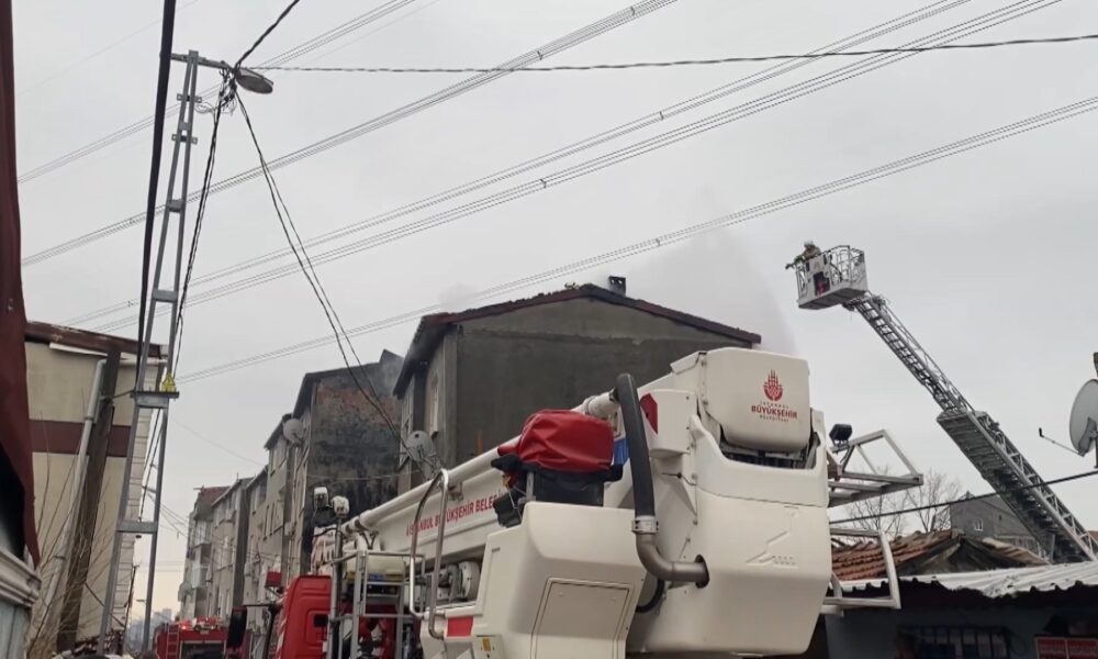 İstanbul – Başakşehir’de 3 katlı binanın çatısı alev alev yandı