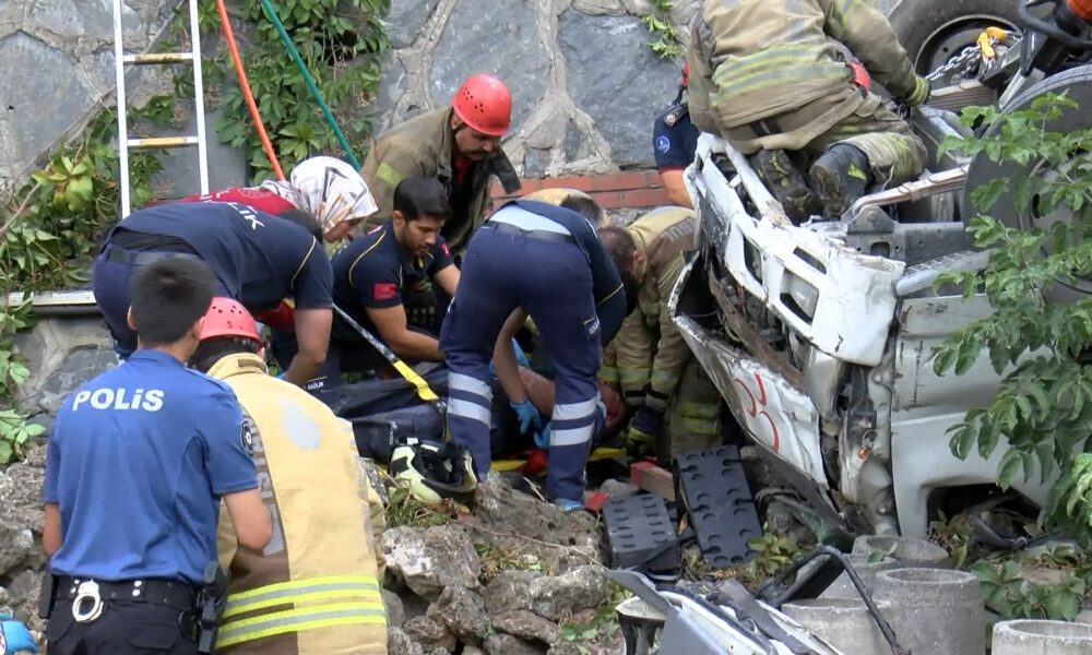 İstanbul – Başakşehir’de kamyonet 5 metre yükseklikten düştü; şoför 1 saatlik çalışmayla kurtarıldı / Aktüel görüntüyle geniş haber