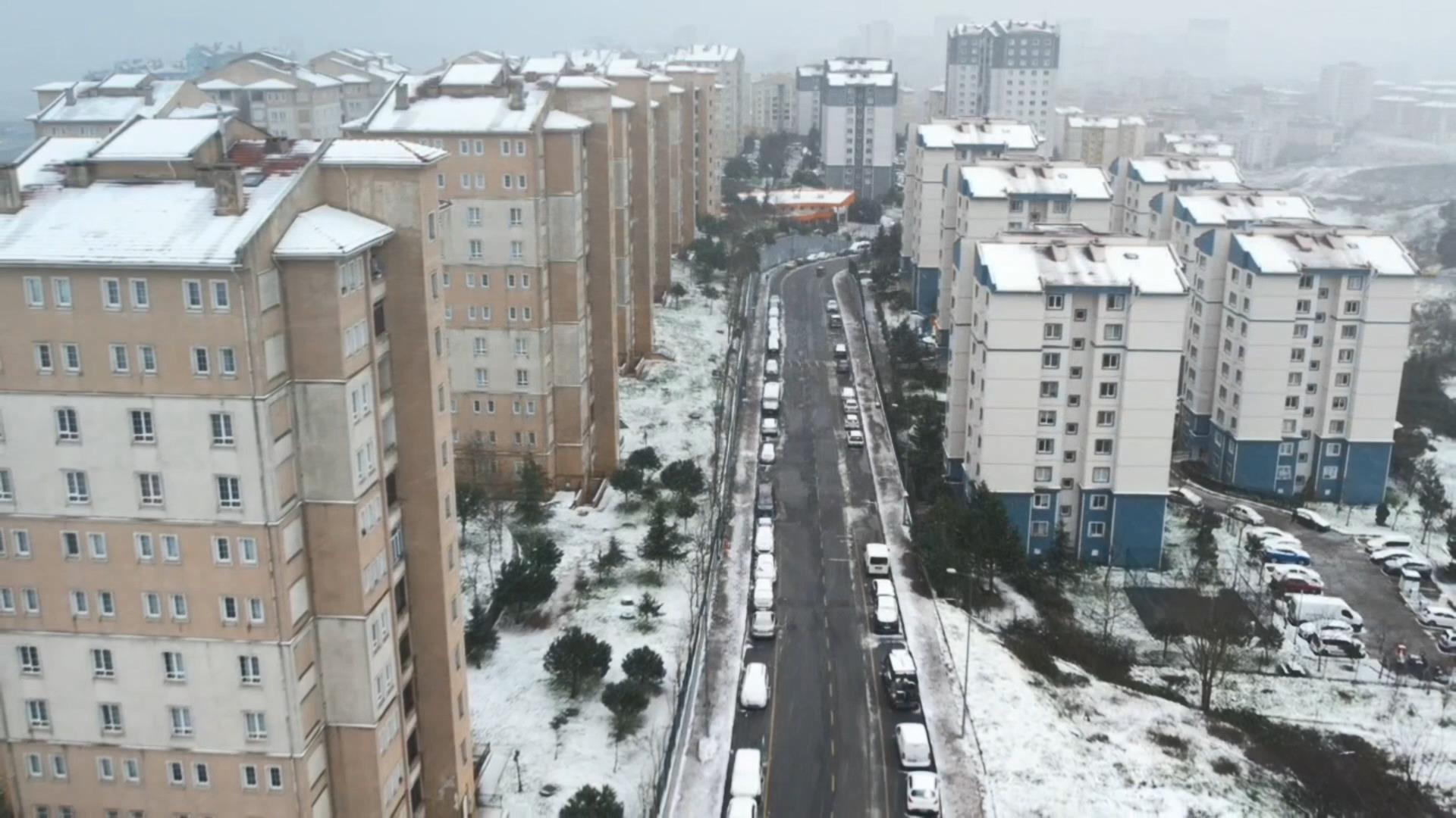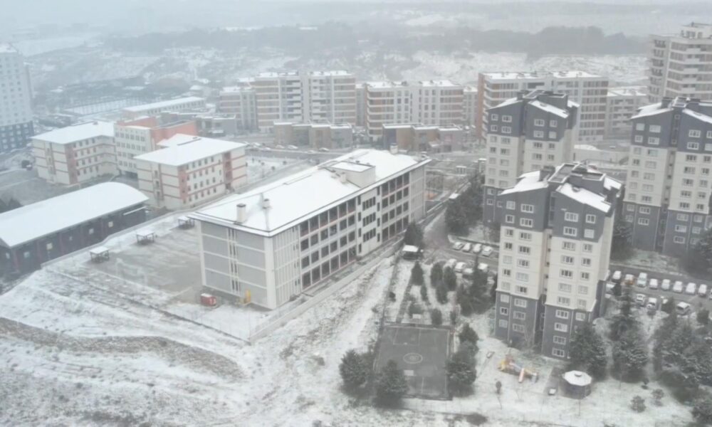 İstanbul – Başakşehir’de kar yağışı havadan görüntülendi