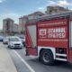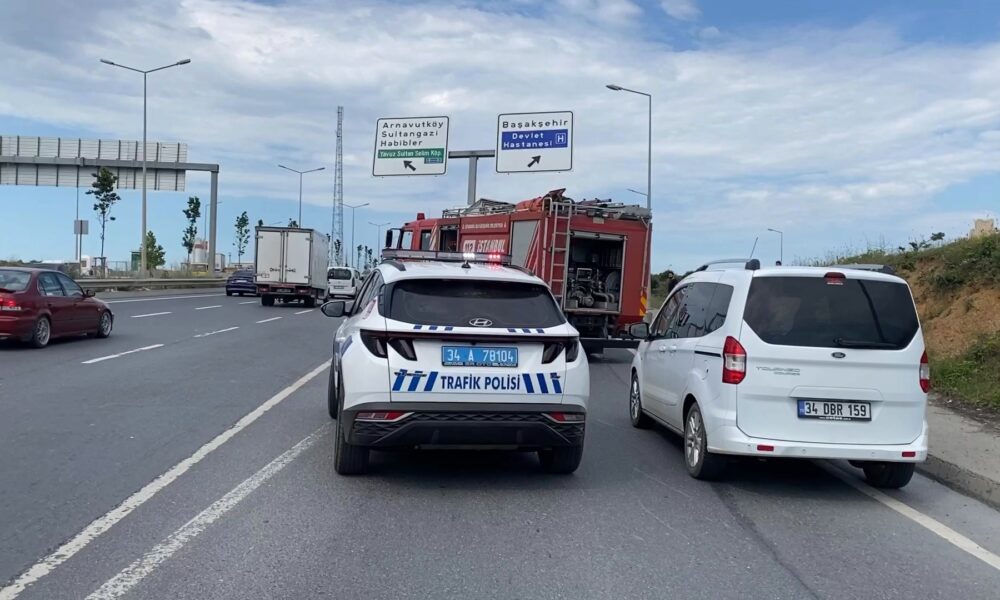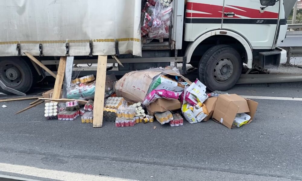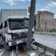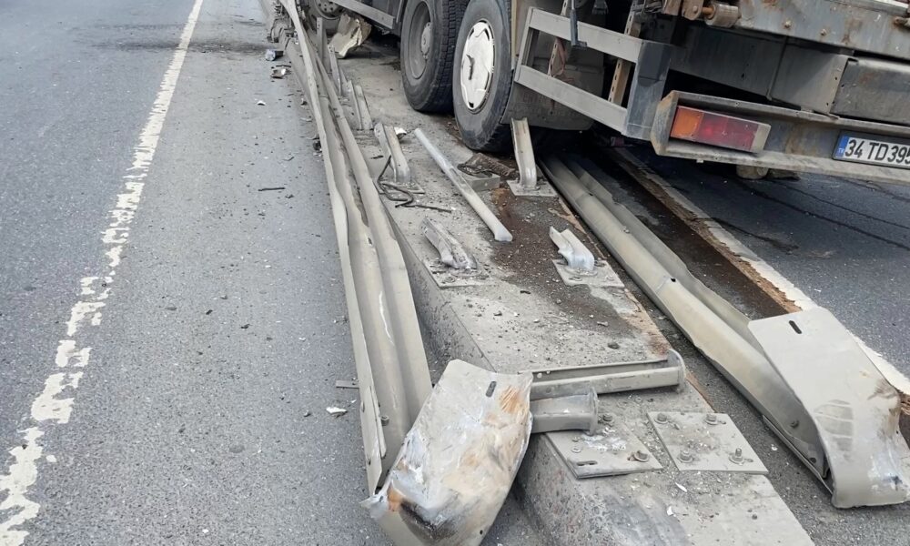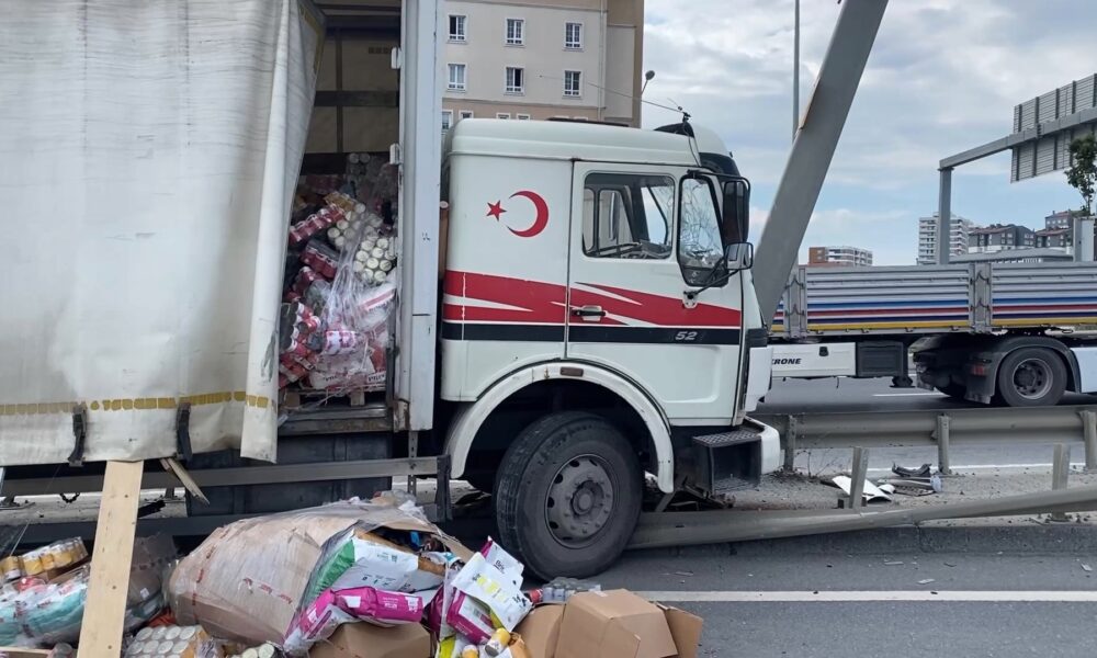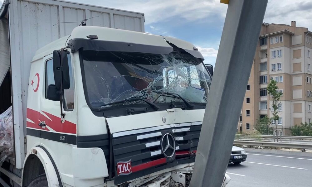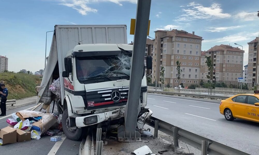 İstanbul- Başakşehir’de mama yüklü kamyon önce bariyere ardında direğe çarptı