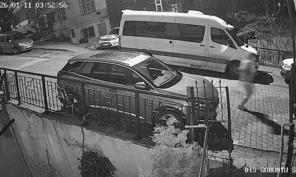Yaşanan saldırı anı sokaktaki bir binanın güvenlik kamerasına yansıdı. Görüntülerde, kapüşonlu ve yüzü maskeli bir kişinin yürüyerek araca doğru geldiği, ardından elindeki levye ile araca saldırdığı aynı zamanda o anları cep telefonu ile kaydettiği ve sonrasında geldiği yöne doğru kaçtığı anlar yer alıyor.