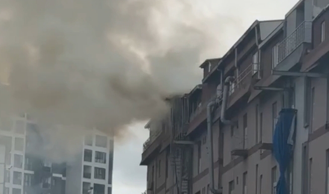 • Başakşehir’de 4 katlı terlik atölyesinin çatı katında yangın çıktı. Olay yerine çok sayıda itfaiye ekibi sevk edildi. Ekiplerin müdahalesiyle yangın kısa sürede kontrol altına alındı. - Fotoğraf: İstanbul DHA