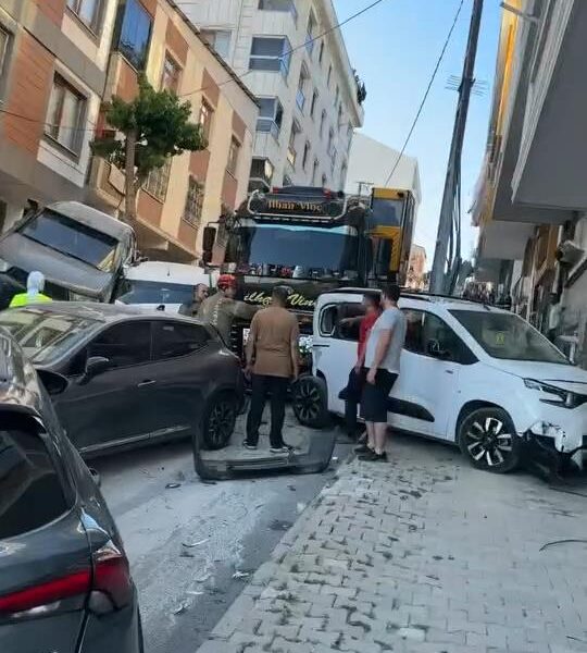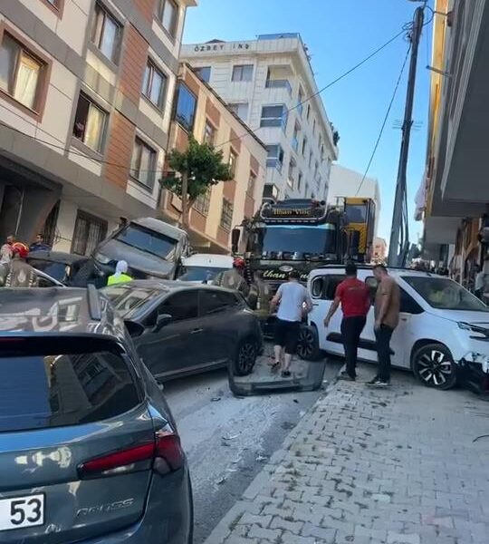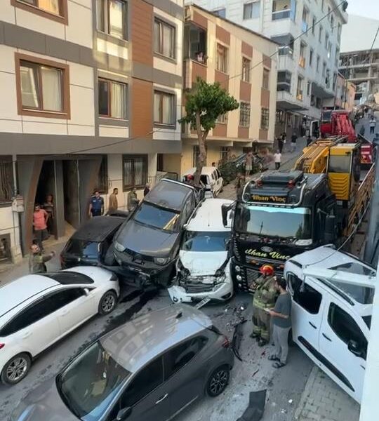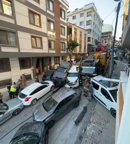İstanbul – Başakşehir’de vinç park halindeki 18 araca çarptı -1