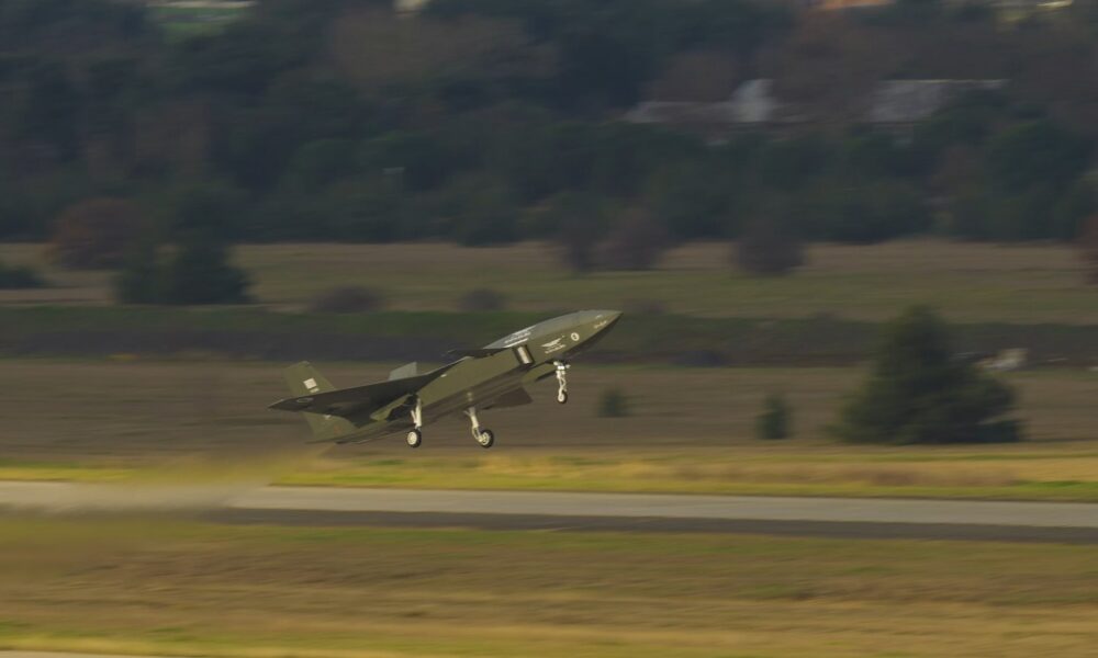 • BAYRAKTAR Kızılelma İnsansız Savaş Uçağı, akıllı filo otonomisi kabiliyetine yönelik gerçekleştirilen test uçuşunu başarıyla tamamladı. Fotoğraf: İbrahim Yıldız / İstanbul DHA