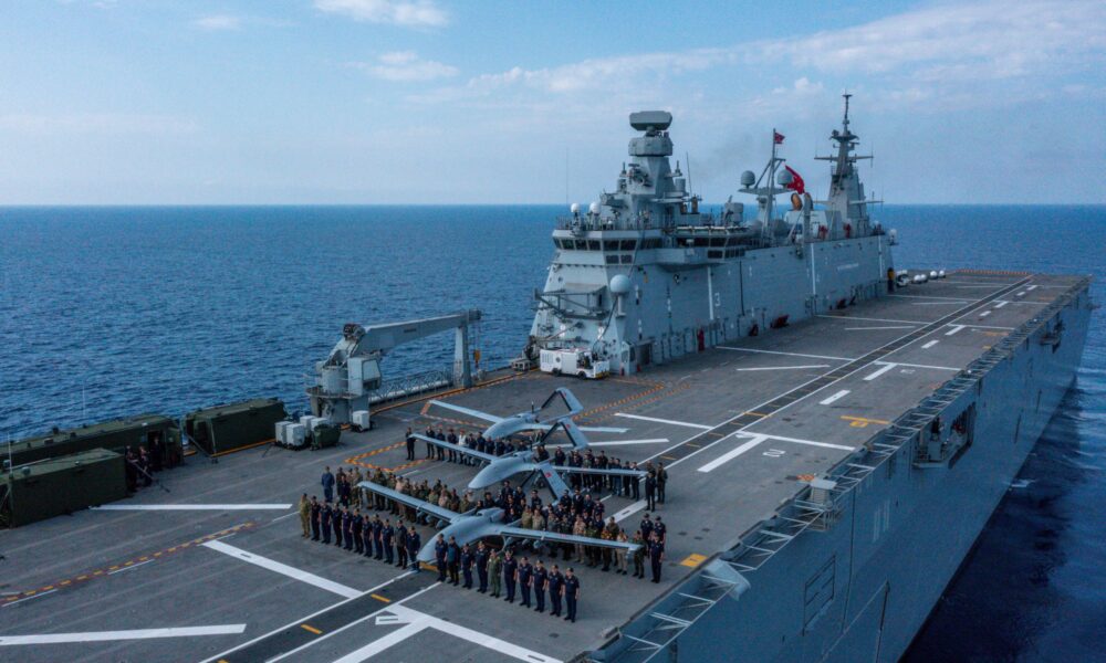 • DENİZKURDU 2025 Tatbikatında seçkin gözlemci gününde iki Bayraktar TB3 SİHA, Akdeniz’de seyreden TCG Anadolu’dan art arda havalanarak kara hedefine yönelik ikili salvo atışını isabetle gerçekleştirdi. Fotoğraf:İstanbul, (DHA)