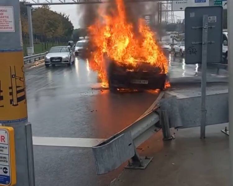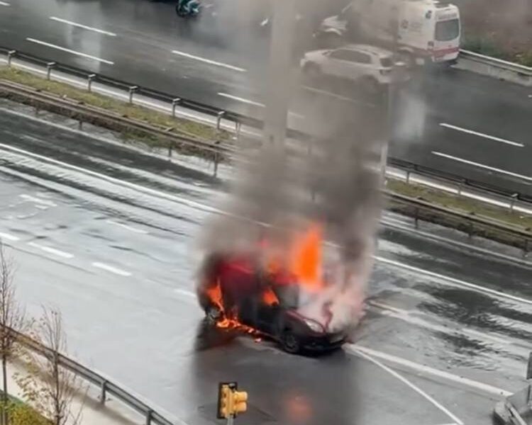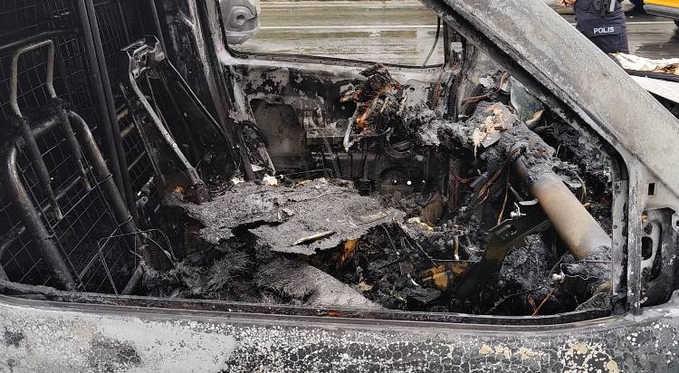 İstanbul – Bayrampaşa’da hafif ticari araç alev alev yandı