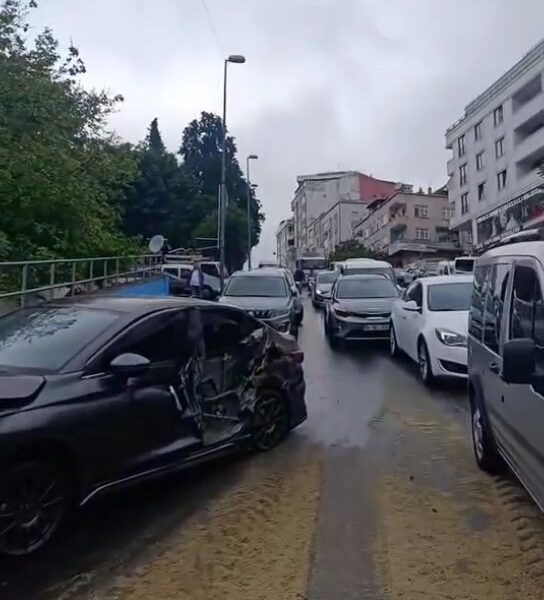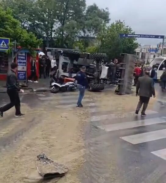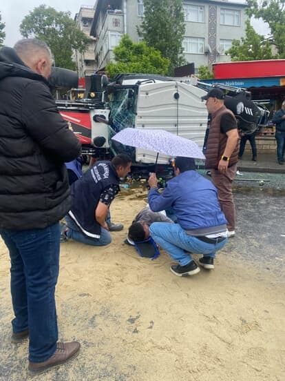 İstanbul- Bayrampaşa’da iş makinesi araçlara çarpıp devrildi-1