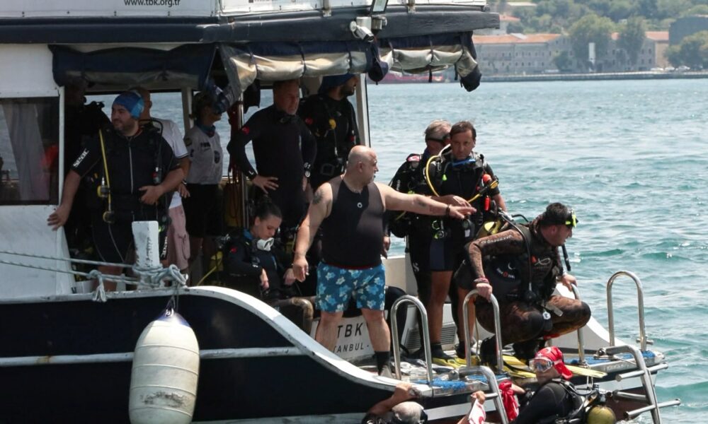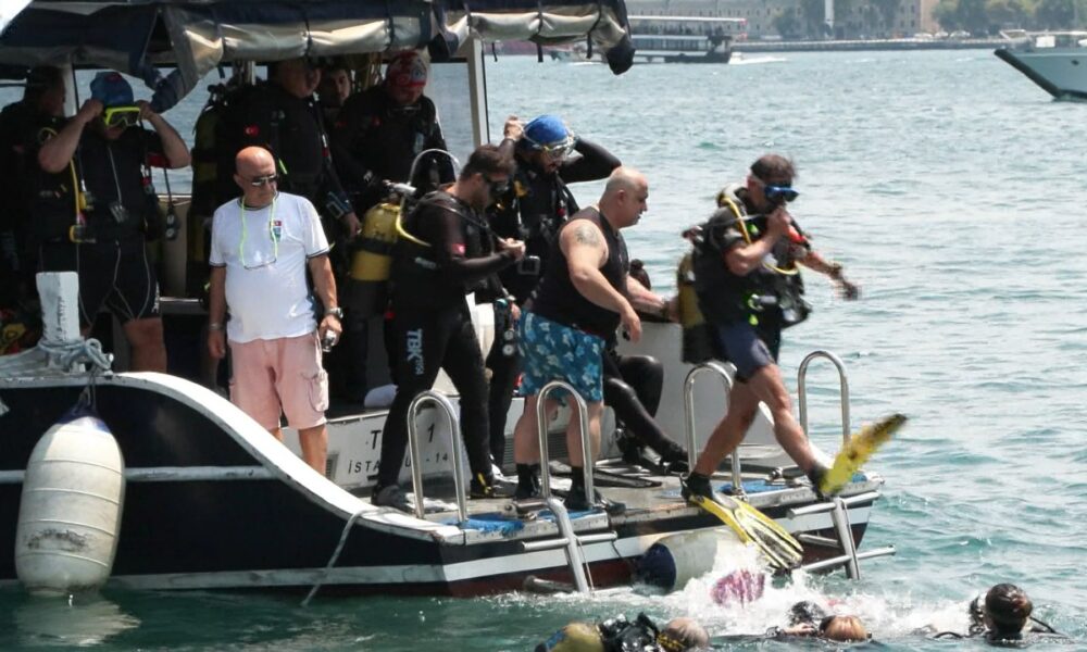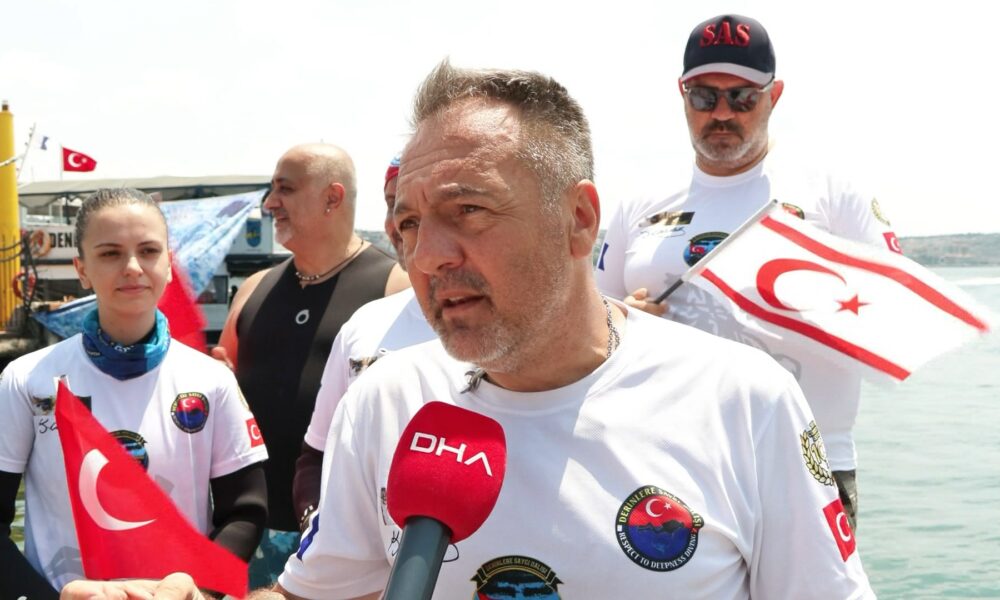 DERİNLERE Saygı Dalış Topluluğu Kıbrıs Barış Harekatının 50. yıldönümü kutlamaları kapsamında Beşiktaş İskelesinde dalış yaptı. Fotoğraftaki Gökhan Karakaş. İstanbul DHA