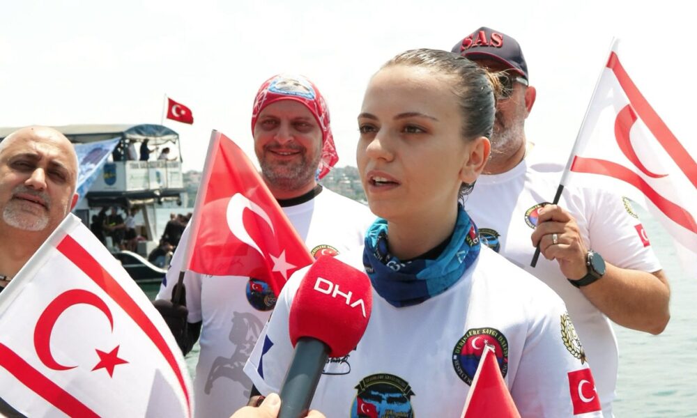DERİNLERE Saygı Dalış Topluluğu Kıbrıs Barış Harekatının 50. yıldönümü kutlamaları kapsamında Beşiktaş İskelesinde dalış yaptı. Fotoğraftaki Sinem Balaç. İstanbul DHA