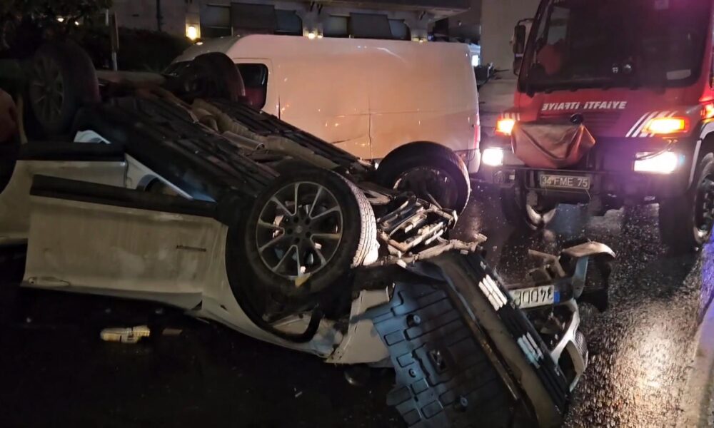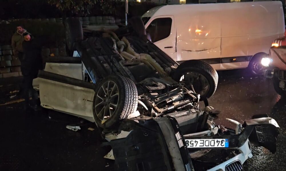İstanbul – Beşiktaş’ta minibüse çarpan otomobil takla atarak caddeye uçtu; 2 yaralı