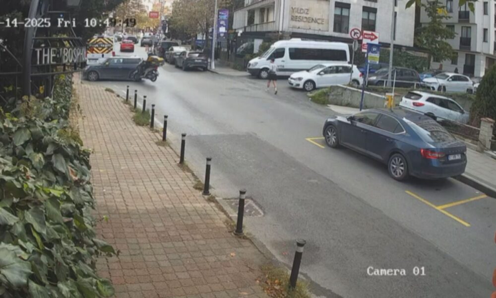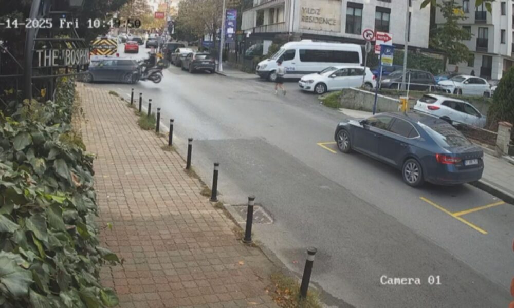 İstanbul – Beşiktaş’ta motosikletin otomobile çarptığı kaza kamerada