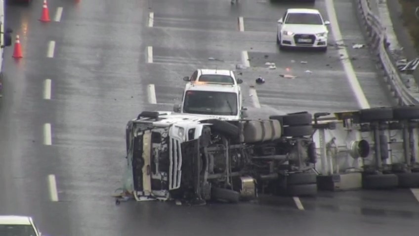 İstanbul – Beykoz Kuzey Marmara Otoyolu’nda TIR devrildi -1