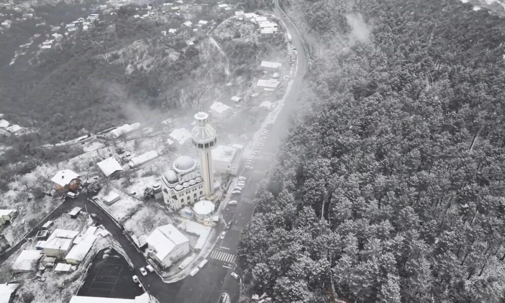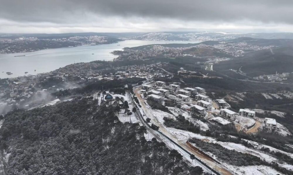İstanbul – Beykoz’da etkili olan kar yağışı havadan görüntülendi