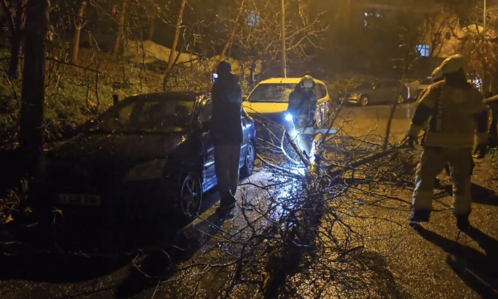 İstanbul- Beykoz’da fırtınada devrilen ağaç 2 otomobilin üzerine düştü