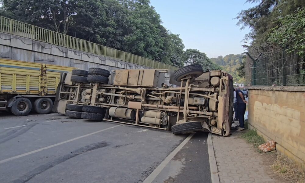İstanbul- Beykoz’da geri manevra yapan su tankeri devrildi