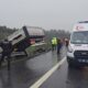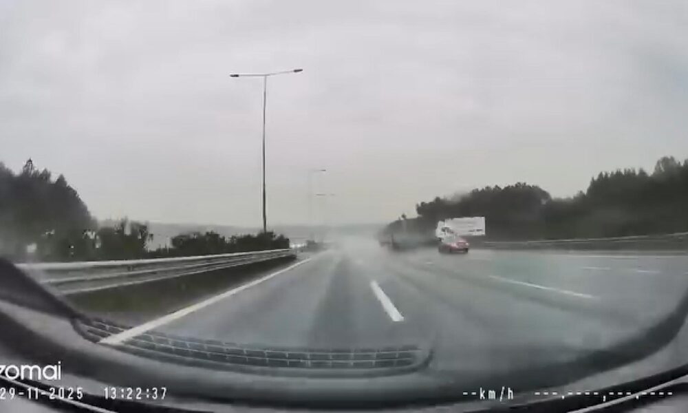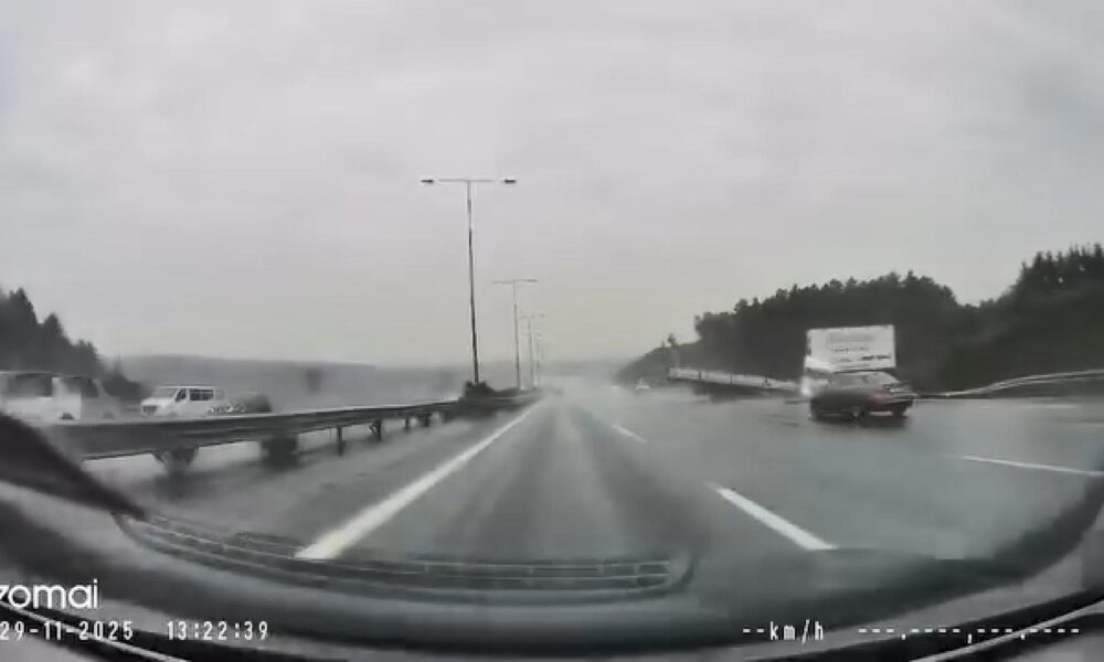 Diğer yandan, TIRın otoyolda savrularak ters döndüğü anlar başka bir aracın kamerasına yansıdı. Araç kamerasına yansıyan görüntülerde TIRın, sağ şeride geçtiği ve bu sırada sağ şeritte ilerleyen otomobille karşı karşıya geldiği anlar görülüyor. Otomobil sürücüsü frene basarak ölümden kurtulurken, TIR şarampole yuvarlanıyor.