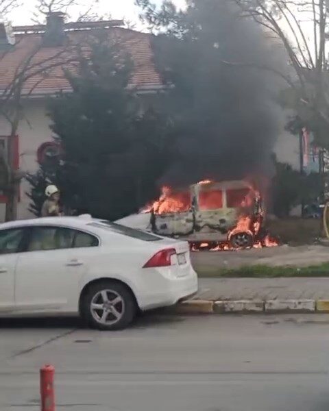 İstanbul- Beylikdüzü’nde park halindeki hafif ticari araç alev alev yandı