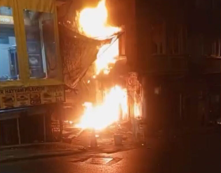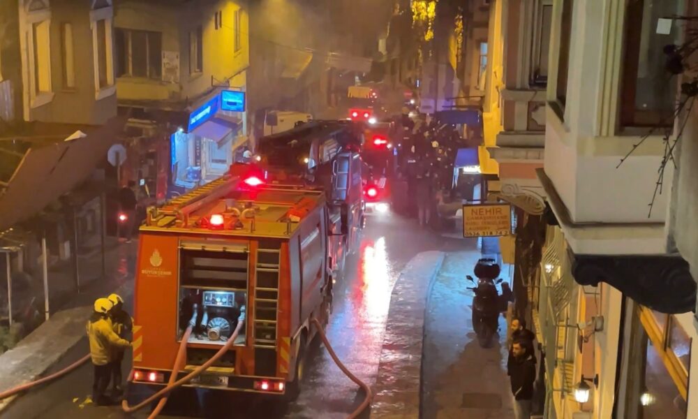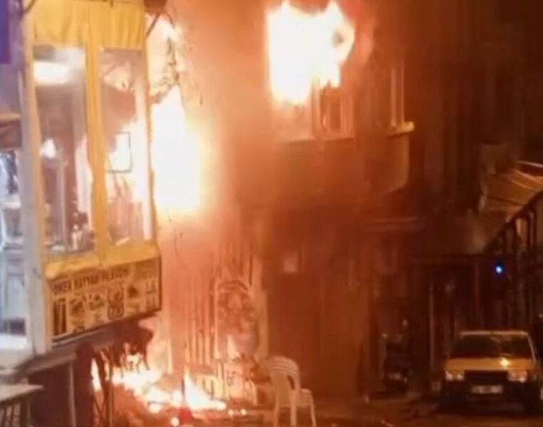 İstanbul -Beyoğlu’nda 2 kişinin dumandan etkilendiği yangındaki patlamalar kamerada