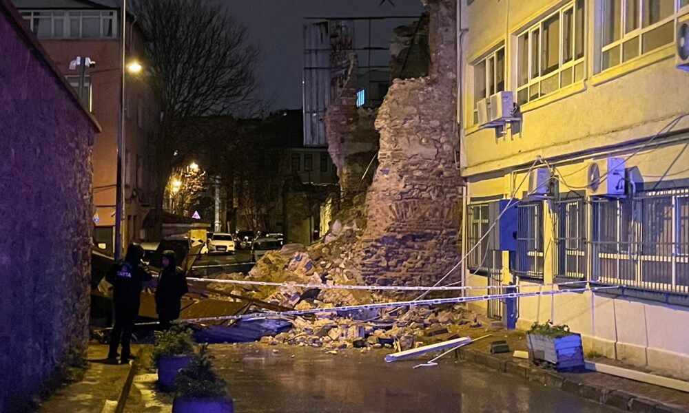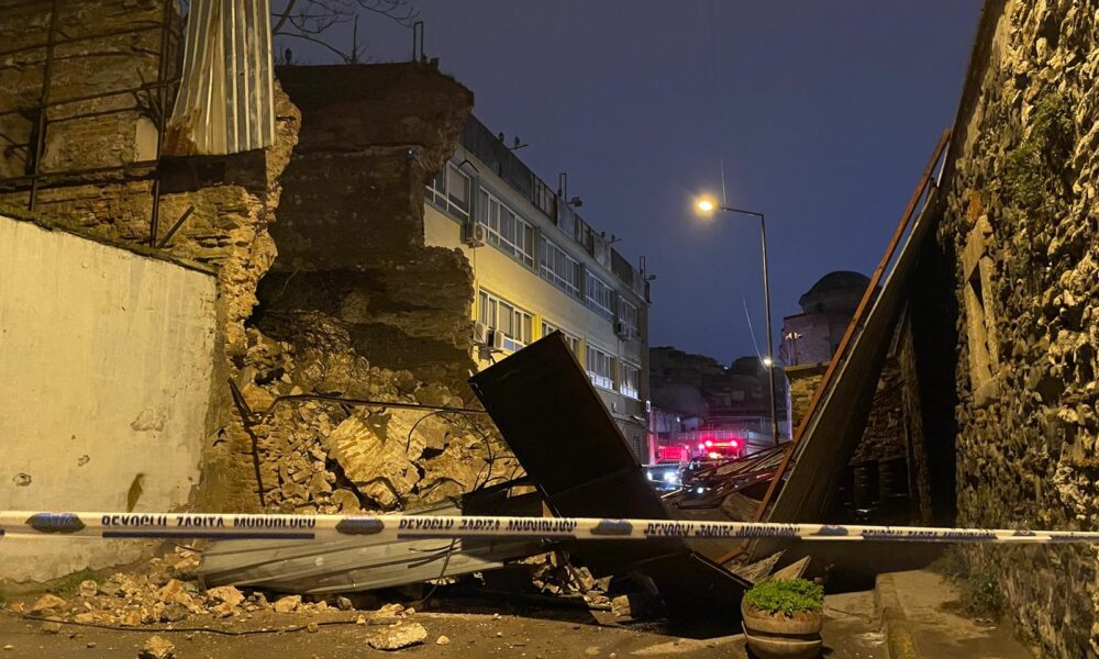 İstanbul – Beyoğlu’nda metruk binanın duvarı çöktü; o anlar kamerada