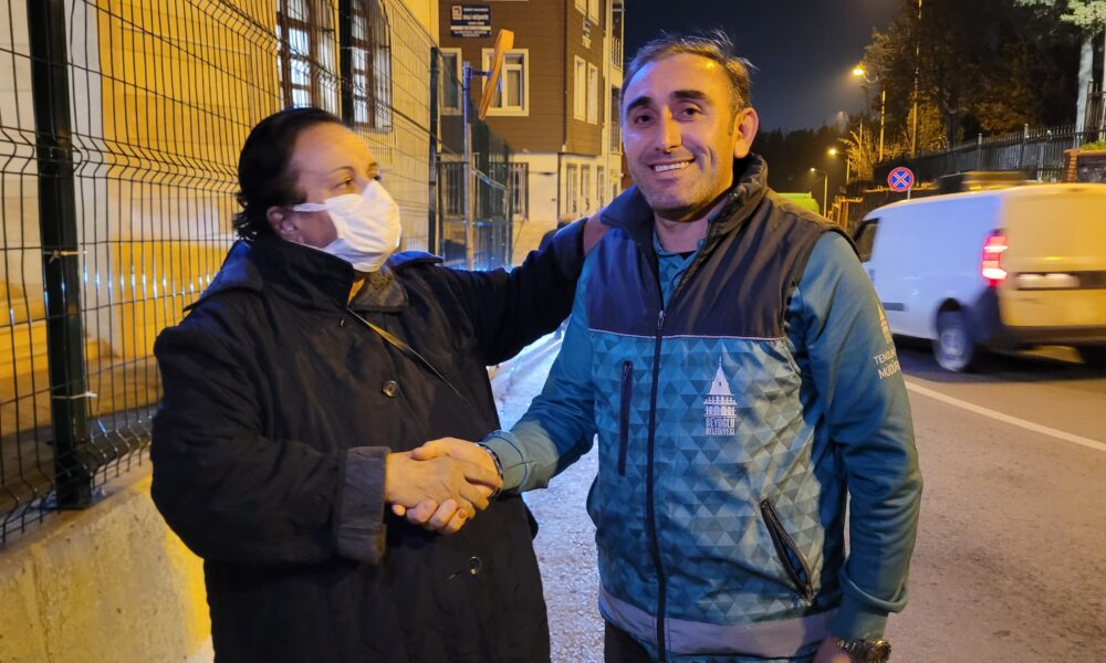 Beyoğlu’nda sokakta temizlik yaparken bulduğu altın dolu çantayı sahibine teslim etti