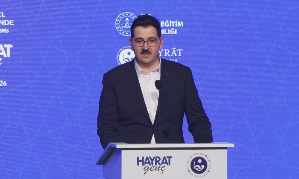 Genç Hayrat Başkanı Kürşat Karaca, “Bugün burada finalini gerçekleştirdiğimiz bu proje sadece bir yarışma değil; bir hafıza inşası, bir kimlik yürüyüşü ve bir medeniyet çağrısıdır. Her yıl yaklaşık 60 bin öğrencimizi yaz okullarımızda milli ve manevi değerlerimizle buluşturuyoruz. Her sene tertip ettiğimiz Aydınlık Yarınlara Kitap Okuma Yarışmamızda geçtiğimiz yıl 368 bin öğrencimizi, bu yıl ise iki hafta önce ödül töreni yine bu salonda yapılmıştı, 500 bin öğrencimizin manevi dünyasına ışık tuttuk” dedi.